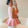 Blusa em tricot modal, modelo peplum, ajusta no corpo.