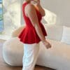 Blusa em tricot modal, modelo peplum, ajusta no corpo.