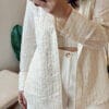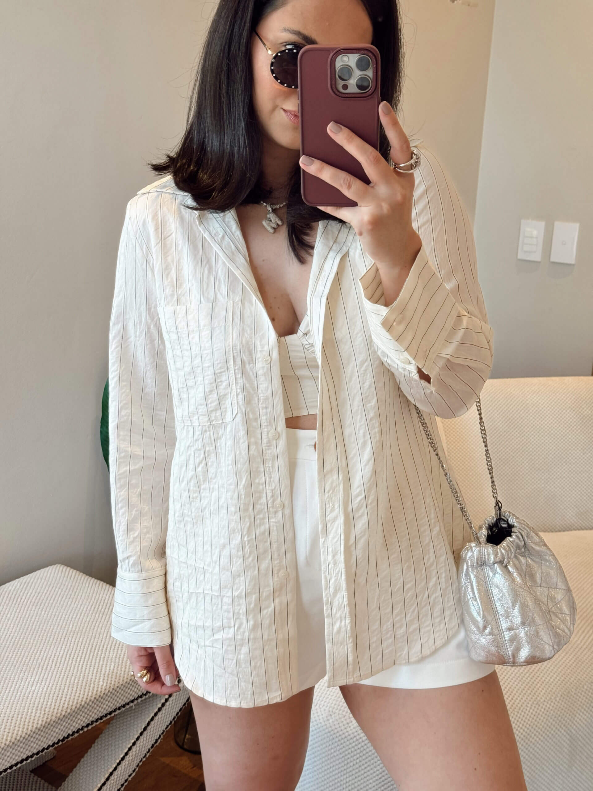 Camisa confeccionada em Possui fechamento por botões, modelagem padrão, punho com botões e acompanha top.