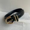 Cinto largura mediana, com fivela modelo  levemente ovalada.
