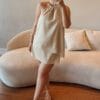 Conjunto confeccionado em liocel, com toque levemente aveludado. Short saia com fechamento em ziper, possui bolso faca nas laretais. Blusa com alça ajustável de amarração.