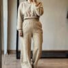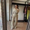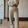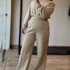 Conjunto de moletom confeccionado em moletom felpado com toque soft touch. A calça possui elástico no cós, pesponto e corte reto. A blusa possui ribana na barra e nas mangas e ombros mais baixos.