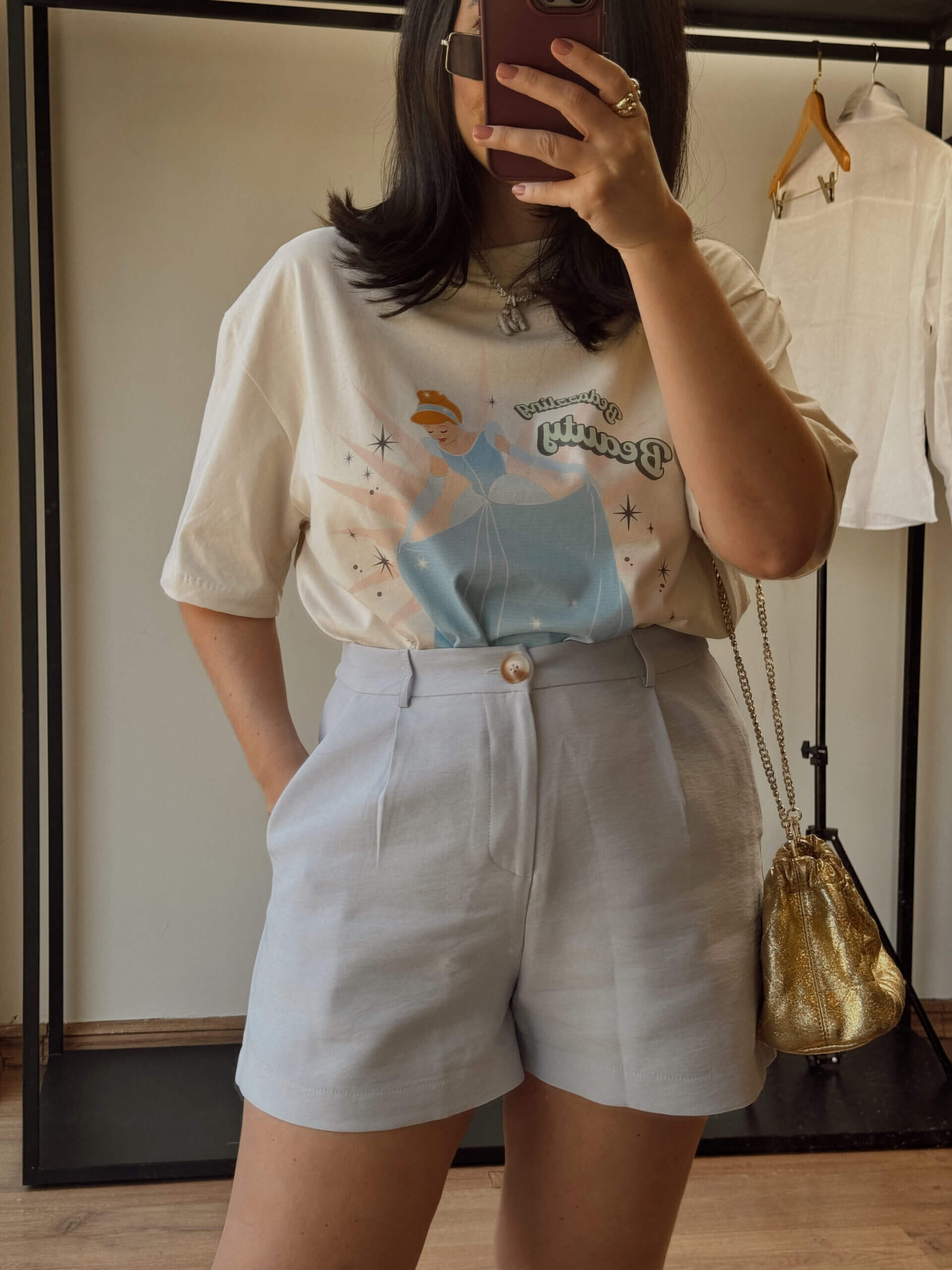 Short confeccionado em liocel encorpado. Possui bolso faca nas laterais. Fechamento por botão.