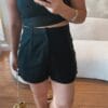 Short alfaiataria 100% linho, fechamento por ziper e colchetes. Possui forro.