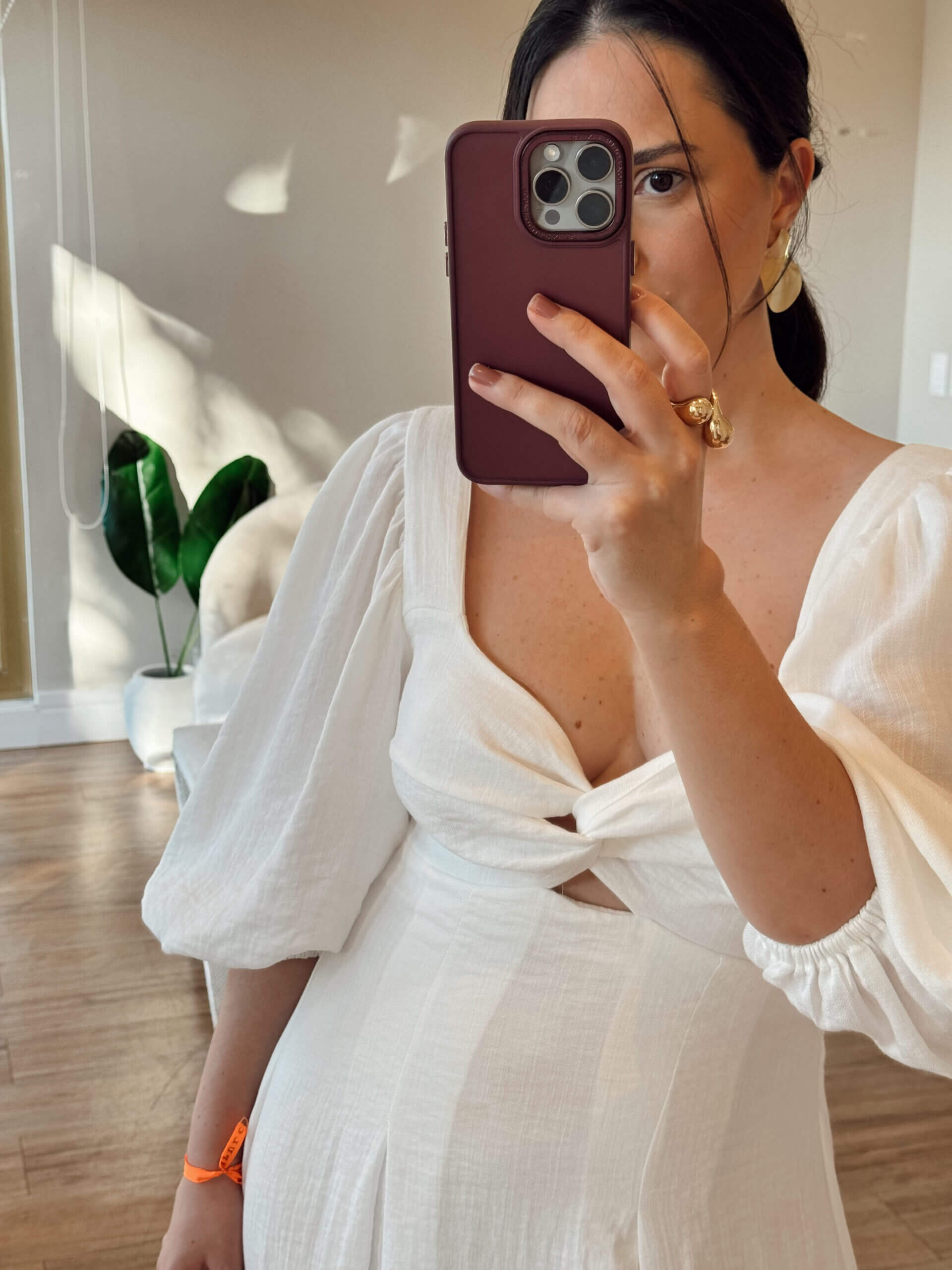 Marcela está usando tamanho *M*