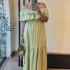 Ombro a ombro com elástico na cintura e ao redor do decote, possui um movimento e caimento impecáveis