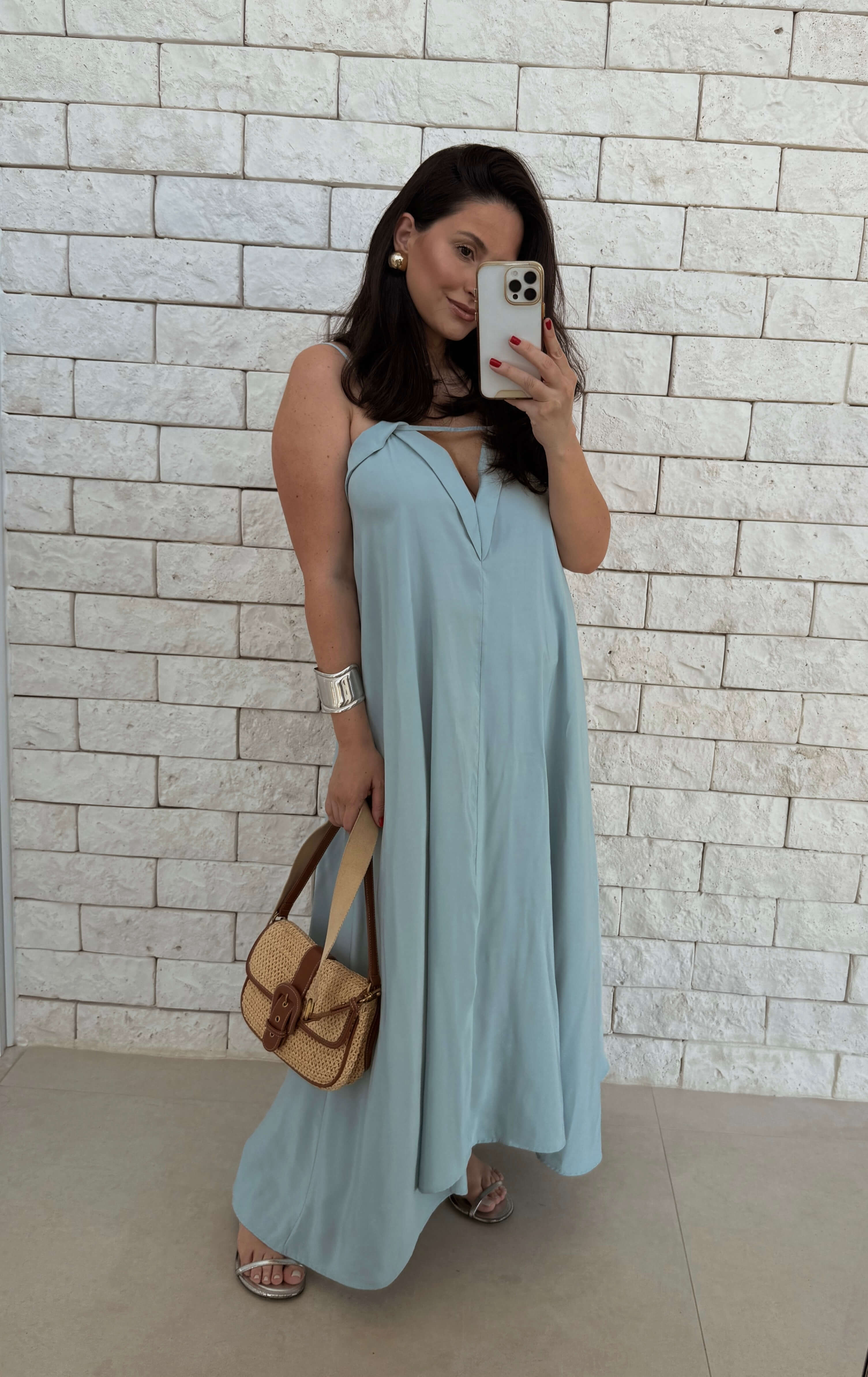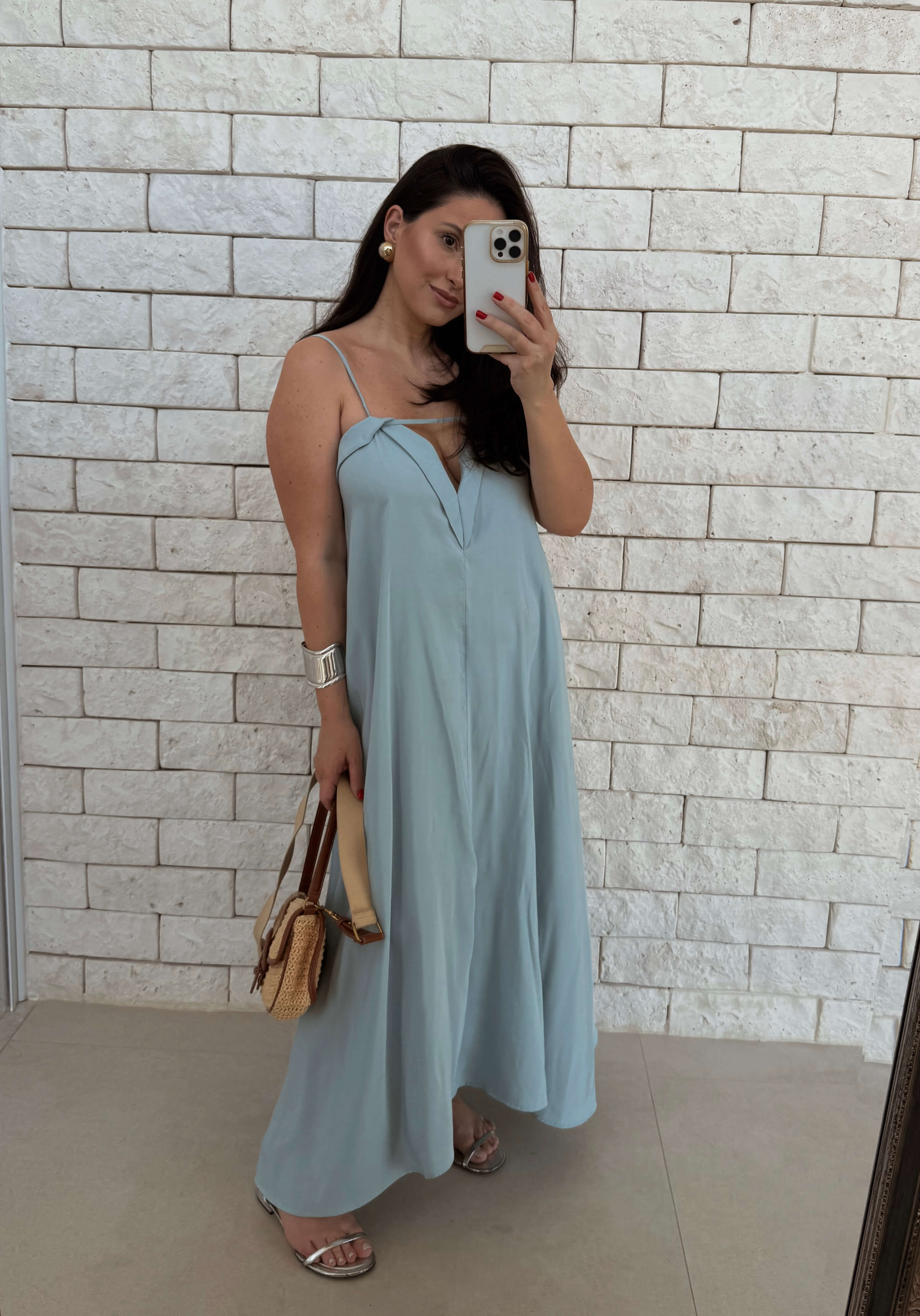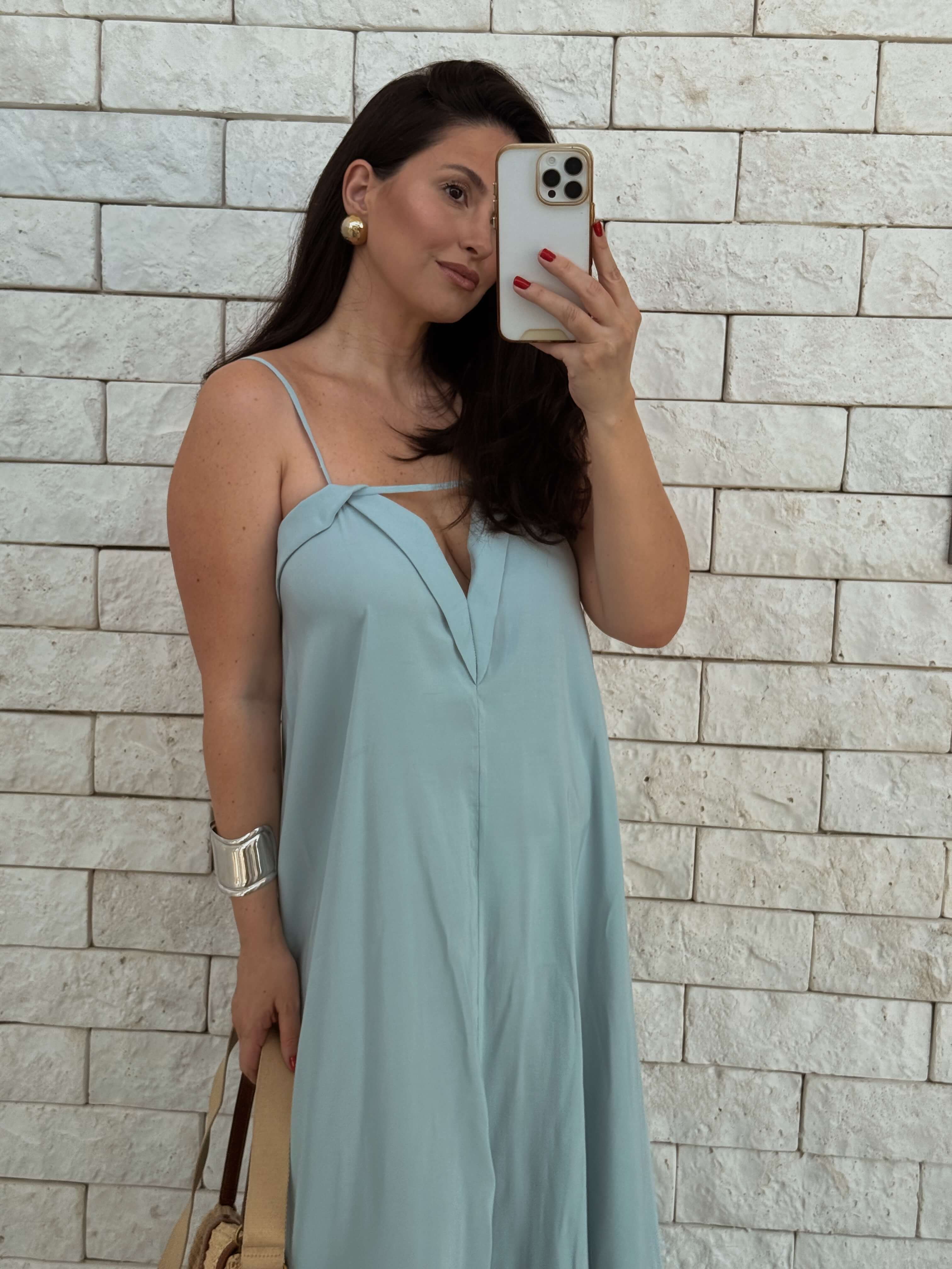 Vestido em lyocell, tecido encorpado, fresco e fluído, com toque levemente aveludado.